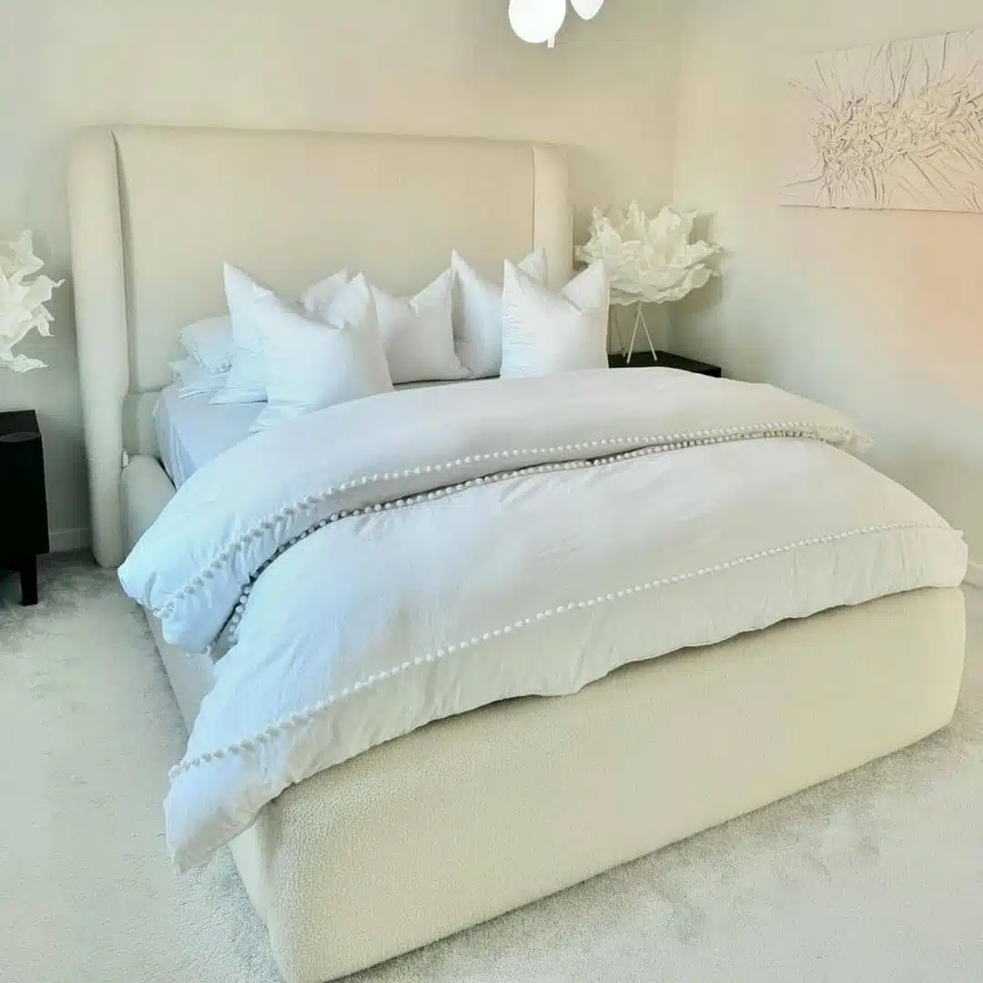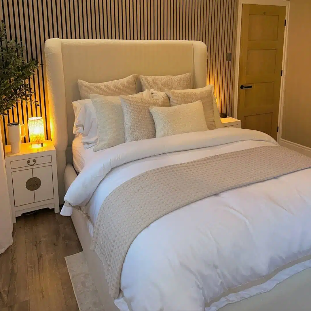 • Higher, plain headboard with a smooth upholstered finish