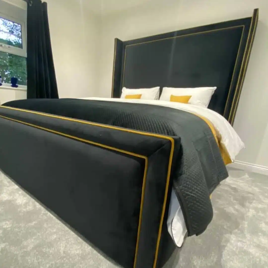 The dimensions provided are for the bed frame and are measured at the widest and longest points – the width of the headboard and the overall length (including both headboard and footboard). All our beds are designed to accommodate UK-standard mattresses.