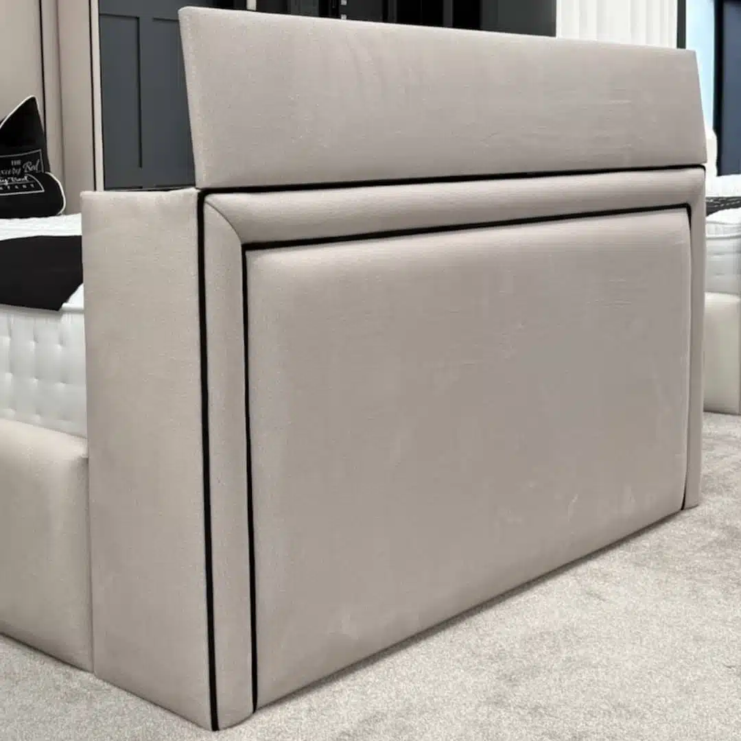 Adding a TV footend will extend your bed's length by up to 8 inches. The footend itself measures 32 inches in height and 11 inches in depth, with the width matching the bed size you choose. (Please ensure this can be manoeuvred through access points such as doorways, staircases, and corners). The maximum TV dimensions allowed are 25 inches in height and 4 inches in depth, while the width depends on the size and model of the bed.
