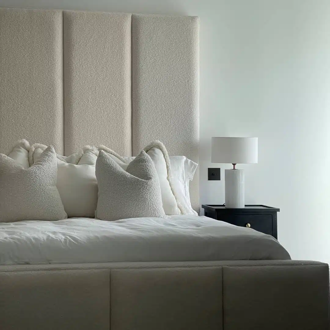 - Tall headboard with four vertical panels