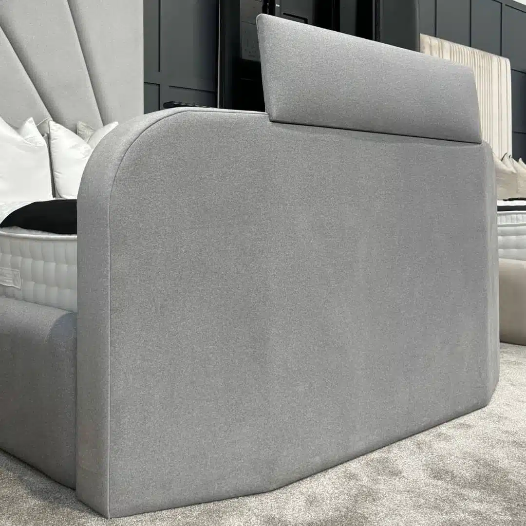Adding a TV footend will extend your bed's length by up to 8 inches. The footend itself measures 32 inches in height and 11 inches in depth, with the width matching the bed size you choose. (Please ensure this can be manoeuvred through access points such as doorways, staircases, and corners). The maximum TV dimensions allowed are 25 inches in height and 4 inches in depth, while the width depends on the size and model of the bed.