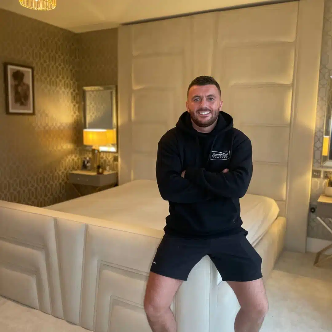 A high footend mirrors the headboard’s detailing for a cohesive, room-anchoring look. Low, padded side rails complete the frame, keeping the profile streamlined while adding a soft, comfortable edge. Handmade to order in any size and fabric and colour finish, the Sono Signature Bed combines bold styling with everyday comfort. Optional lift-up storage can be added for discreet practicality.