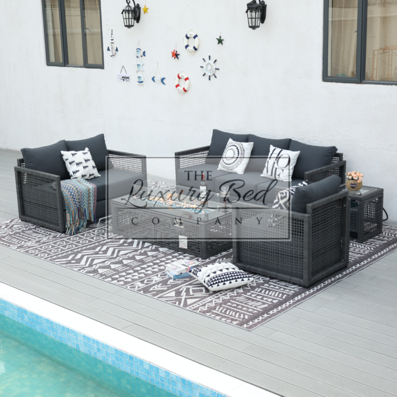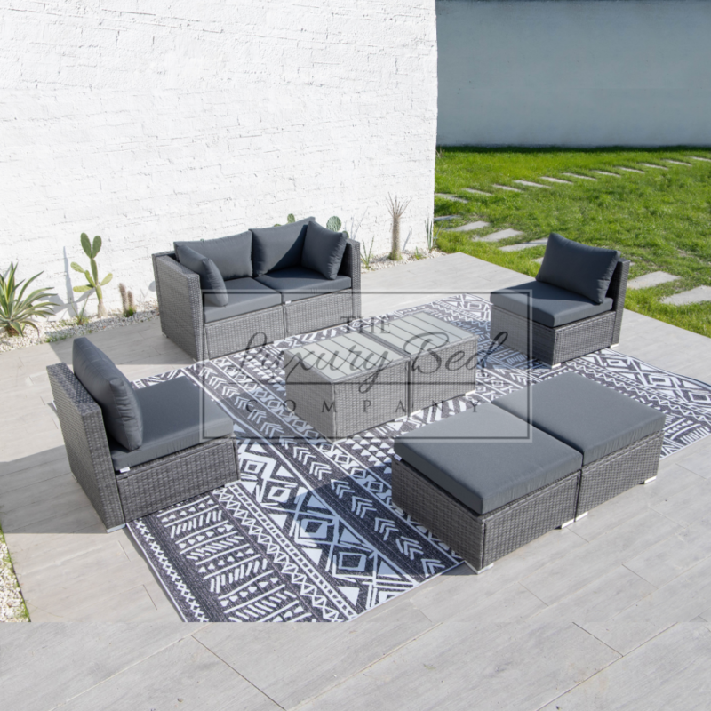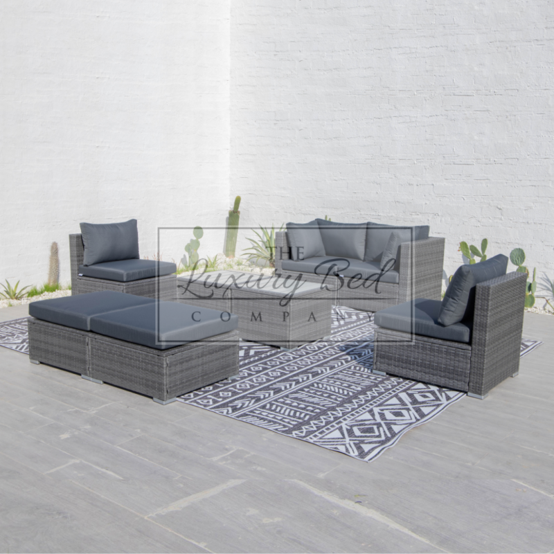 Roselyn 4 Seater Set with 2 Ottomans & 2 Tables