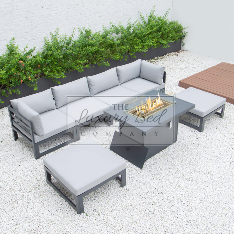 Aura 4 Seater Set with 2 Ottomans & Fire Pit